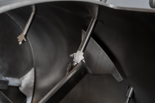 • Dynamic Plow Blades: Strategically angled blades mounted on a horizontal shaft create a high-intensity mixing zone that lifts, disperses, and fluidizes materials for uniform consistency.